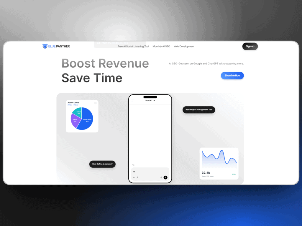 Pentru BluePanther.Agency, am conceput un design web modern si imersiv care aliniaza identitatea vizuala a agentiei cu tehnologia AI pe care o promoveaza. Elementul central al noului layout este estetica futurista combinata cu o arhitectura informationala clara, care traduce servicii tehnice complexe intr-o experienta vizuala usor de parcurs. Aceasta abordare UI/UX transforma site-ul dintr-o simpla lista de servicii SEO intr-un ecosistem digital care inspira inovatie si autoritate tehnologica.