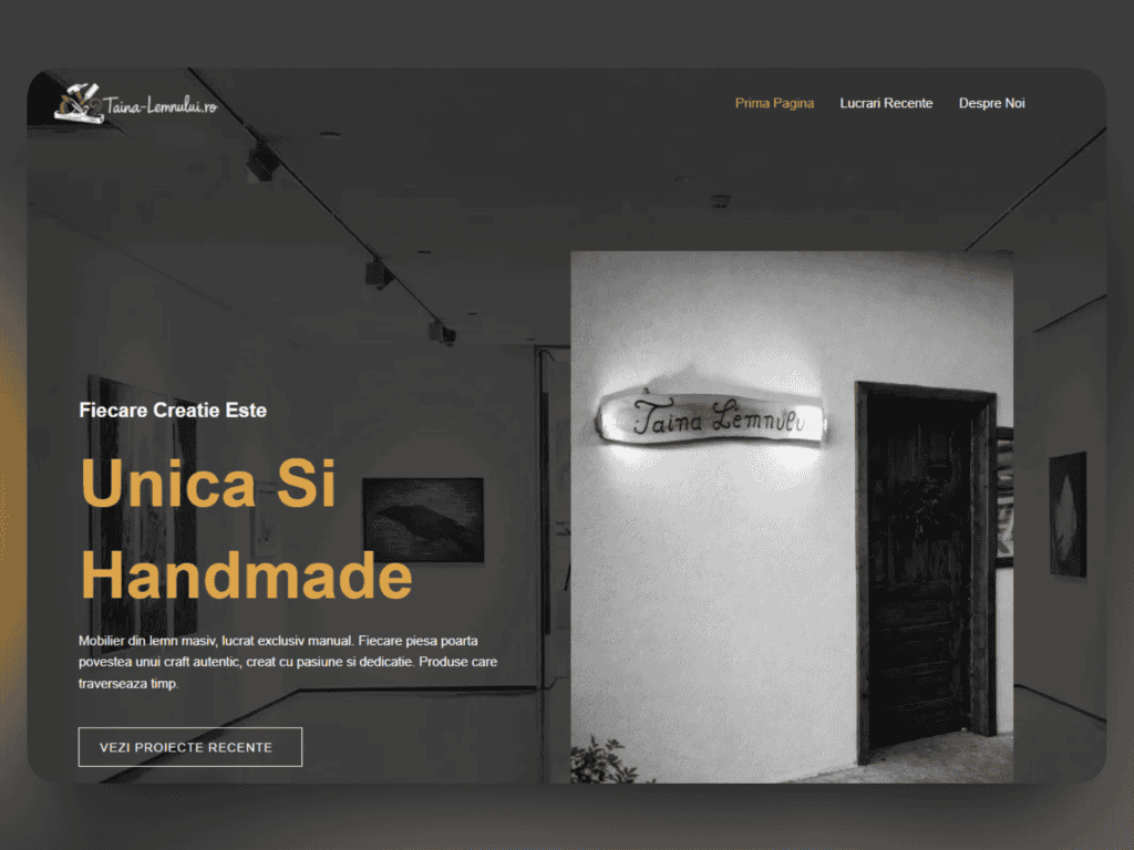 Pentru Taina Lemnului, am realizat un website de prezentare dedicat mobilierului din lemn masiv, lucrat exclusiv manual. Proiectul a fost conceput pentru a evidenția caracterul unic al fiecărei piese, punând accent pe autenticitate, simplitate și valoarea craftului handmade.