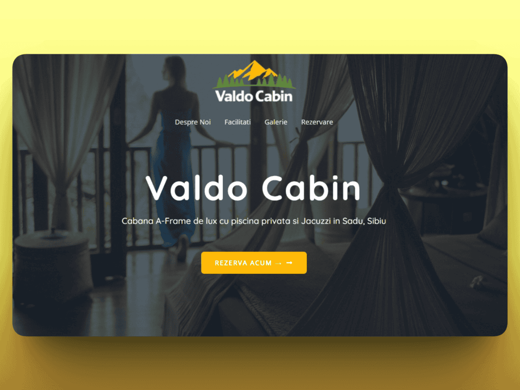 Pentru Valdo Cabin, am creat un website modern si elegant, destinat turistilor care cauta o cazare premium in natura. Site-ul pune in evidenta facilitatile unice: cabana A-Frame noua, piscina privata, Jacuzzi, 2 dormitoare cu baie proprie si terase cu vederi spectaculoase. Structura mobile-first faciliteaza rezervarile rapide si contactul direct cu gazda. Continutul SEO in romana, fara diacritice, e optimizat pentru cautari locale cum ar fi „cabana Sibiu”, „piscina privata Sadu”, asigurand vizibilitate maxima. UX/UI intuitiv si multilingv (romana, engleza, germana) garanteaza o experienta excelenta pentru toti oaspetii.