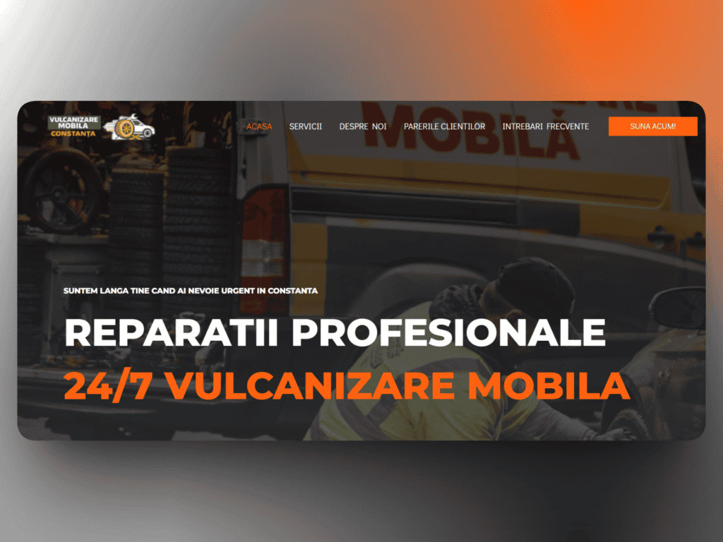 Pentru Vulcanizare-Mobila-Constanta.ro, am realizat un website de prezentare dedicat unui serviciu local de vulcanizare mobila, disponibil non-stop in Constanta si zonele limitrofe. Proiectul a fost gandit pentru a raspunde rapid nevoilor soferilor aflati in situatii de urgenta, punand accent pe claritate, accesibilitate si conversie.