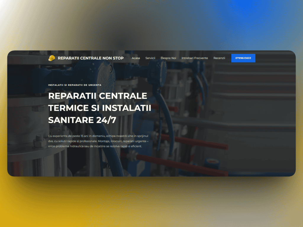Pentru reparatiicentralenonstop.ro, am realizat un website de prezentare orientat pe conversie, dedicat serviciilor de reparatii centrale termice si instalatii sanitare in Bucuresti si Ilfov. Structura este mobile-first, cu accent pe urgenta, incredere si contact rapid 24/7.