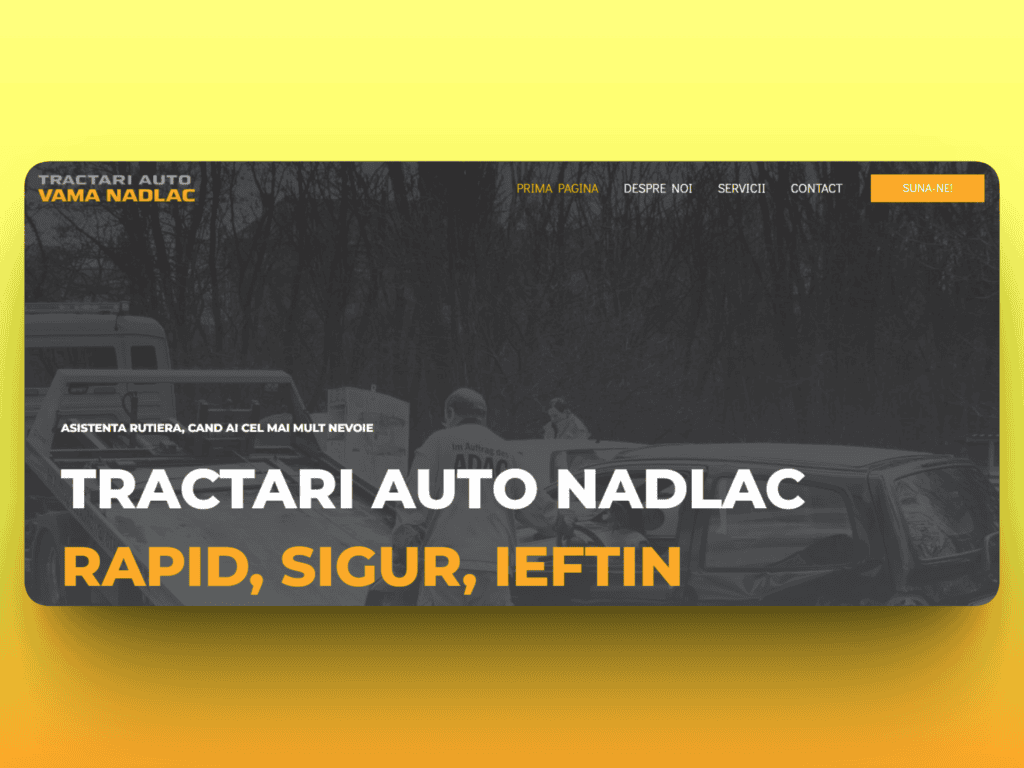 Am realizat un website de prezentare pentru Tractari Auto Nadlac, un serviciu de tractari si asistenta rutiera disponibil non-stop in Nadlac, Romania si Ungaria. Site-ul este gandit pentru situatii de urgenta, cu informatii clare, navigare rapida si butoane vizibile de apel direct.